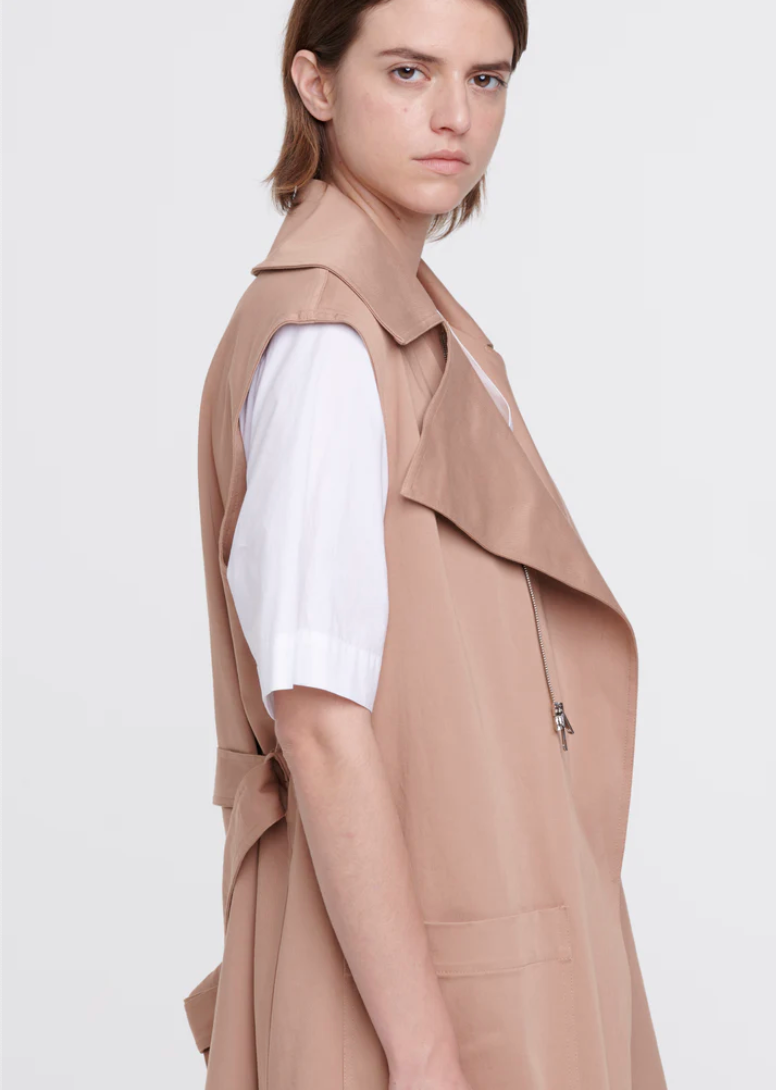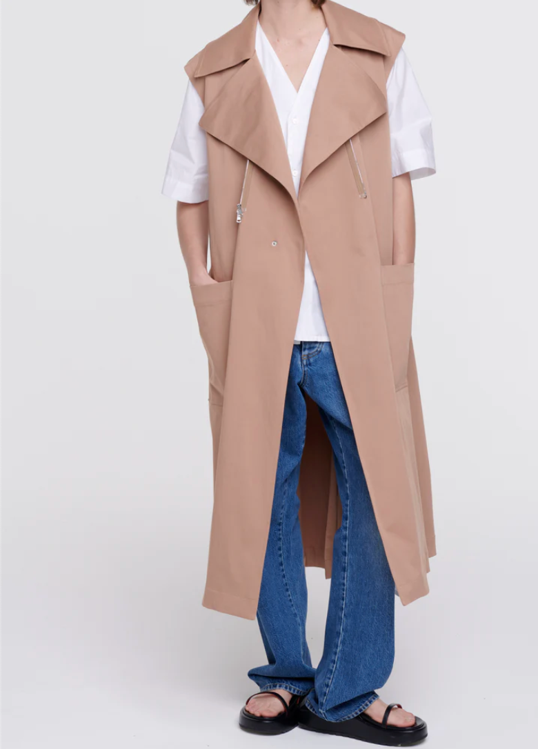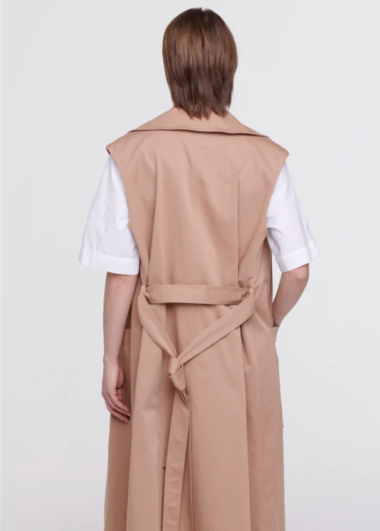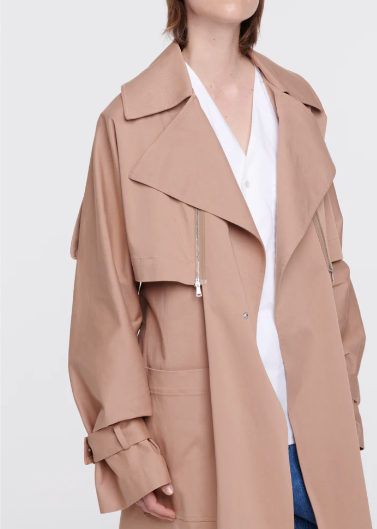 Mid-length cotton trench coat with belt.