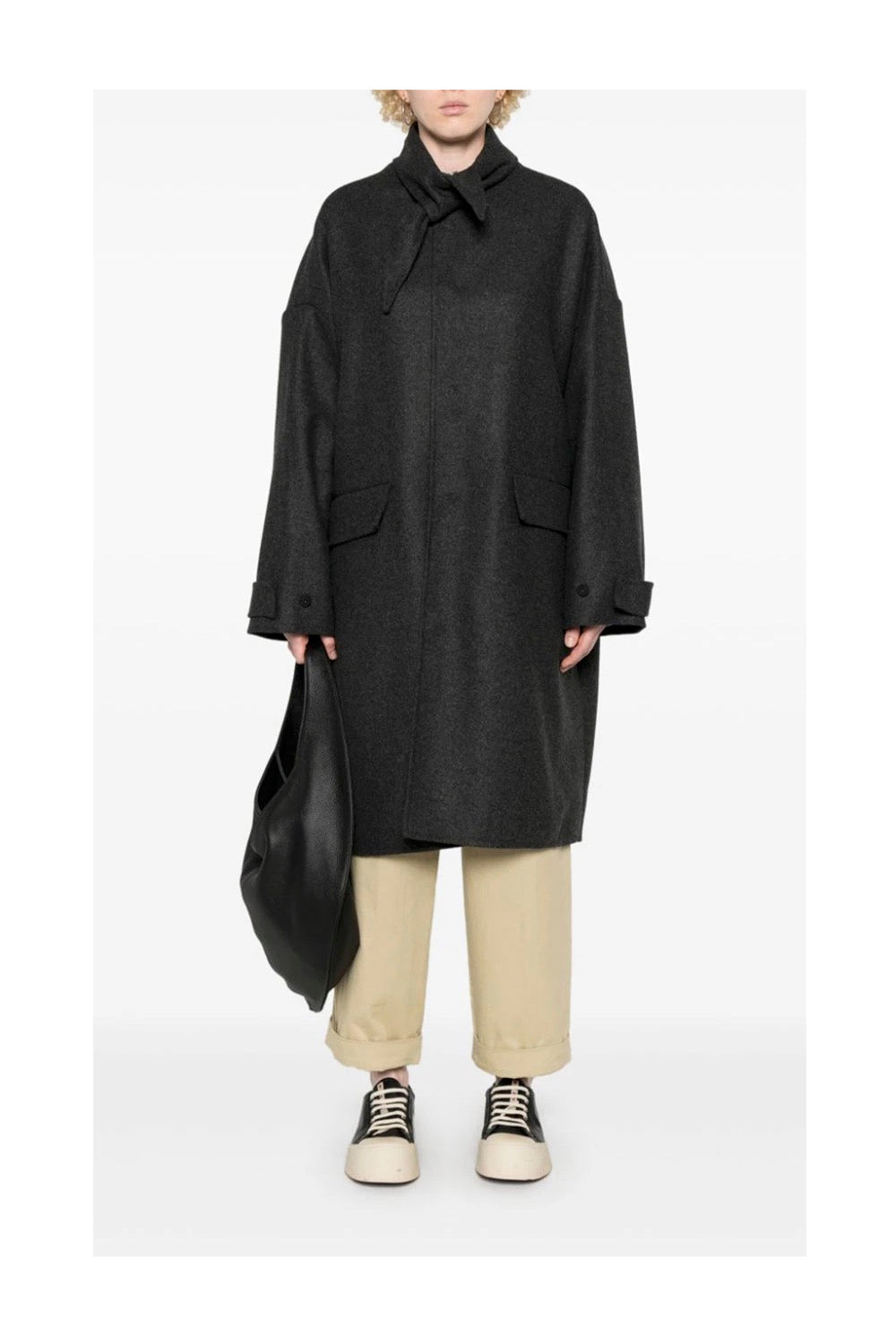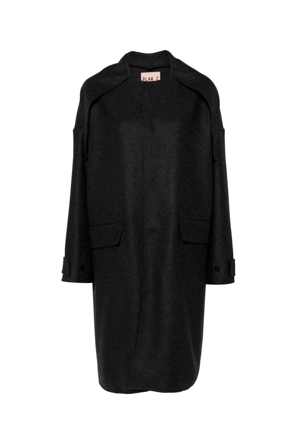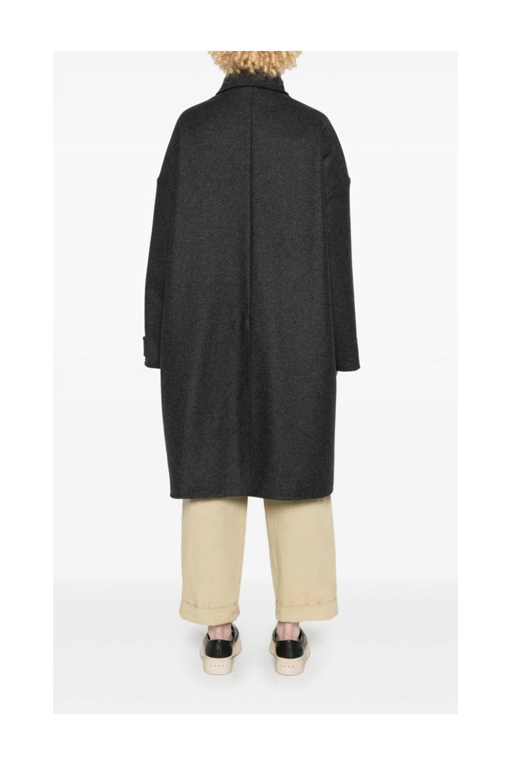 Felted coat designed to be unstructured, offering a loose fit throughout.