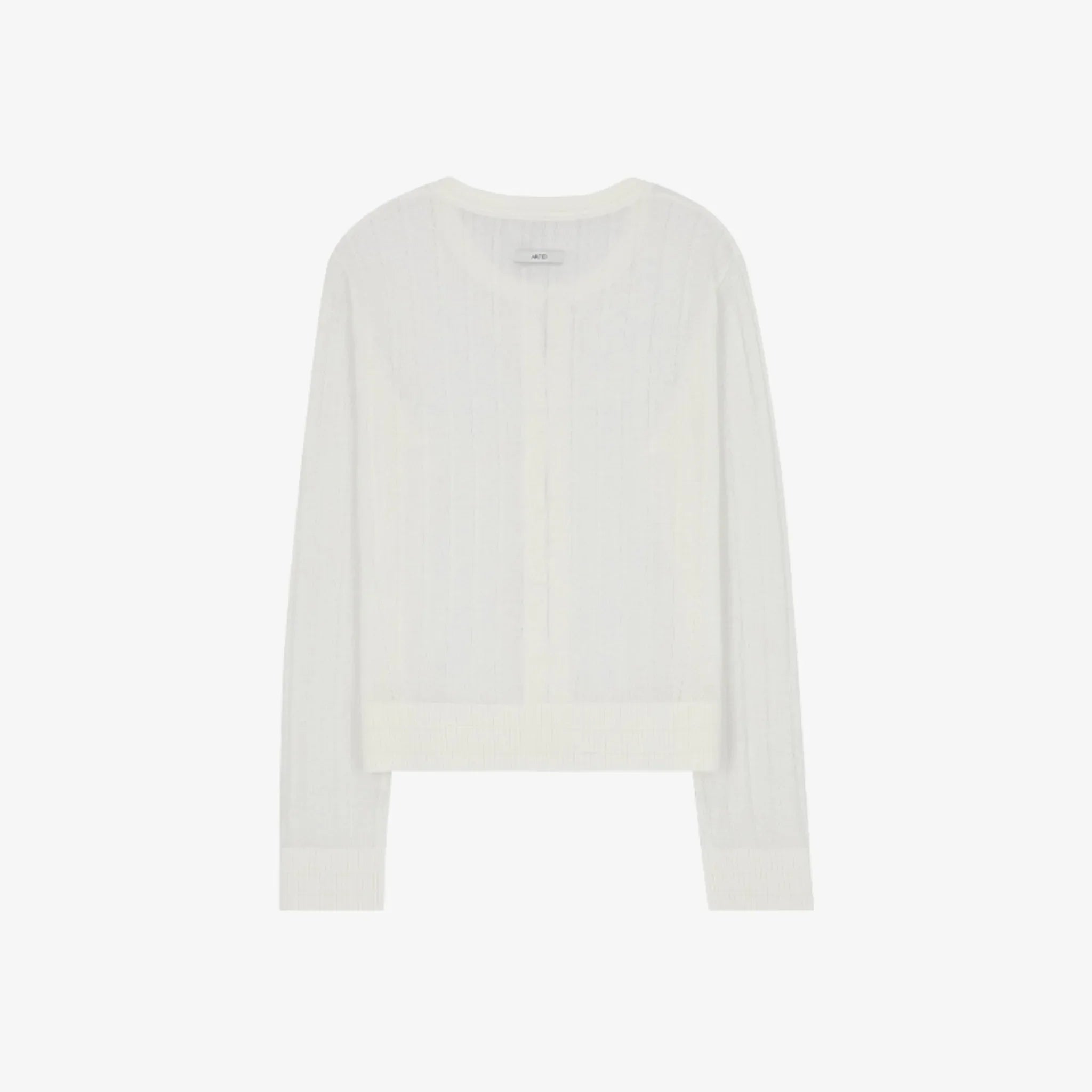 Lightweight textured linen-blend cardigan with subtle sheerness, perfect for airy summer layering. Designed for easy styling over dresses, tops, or swimwear.
