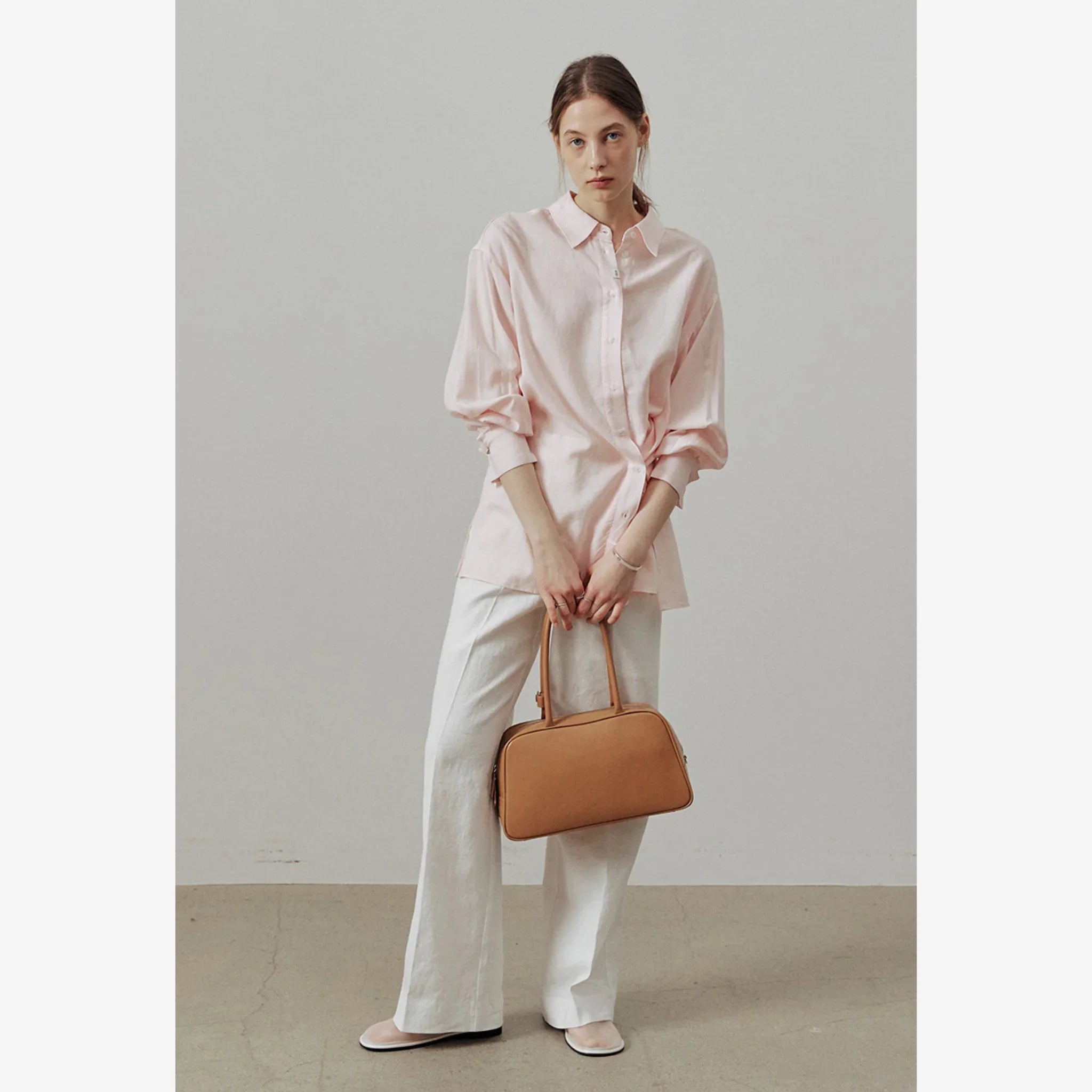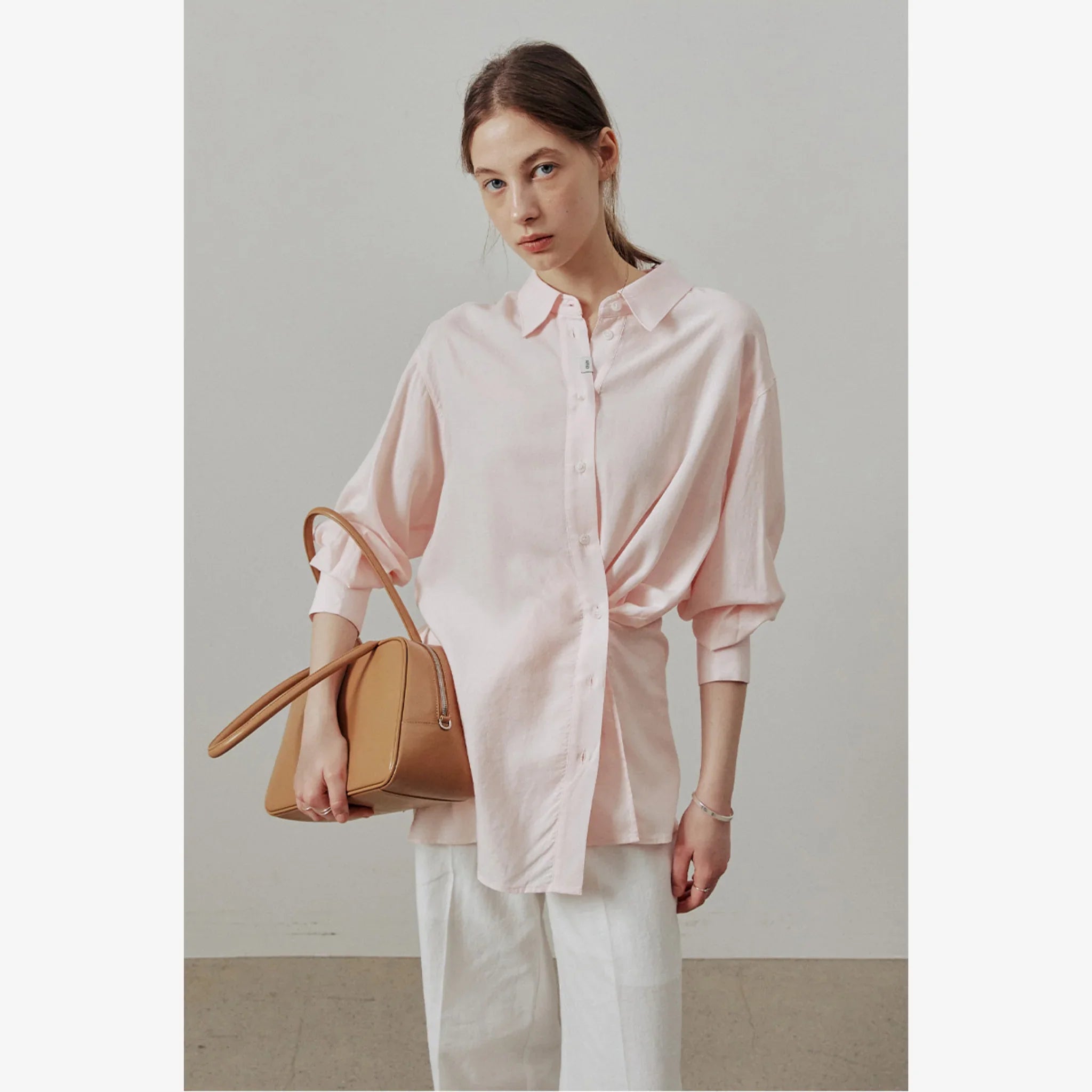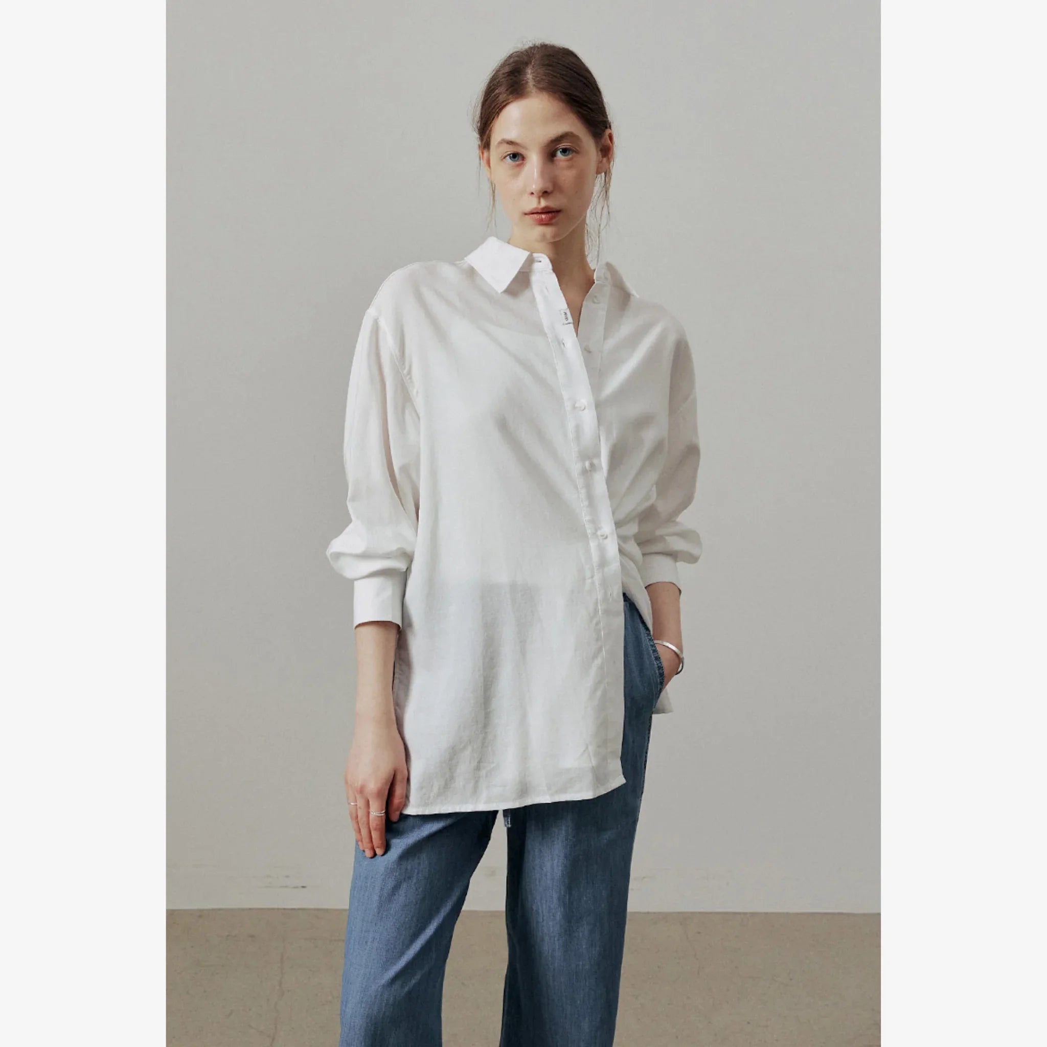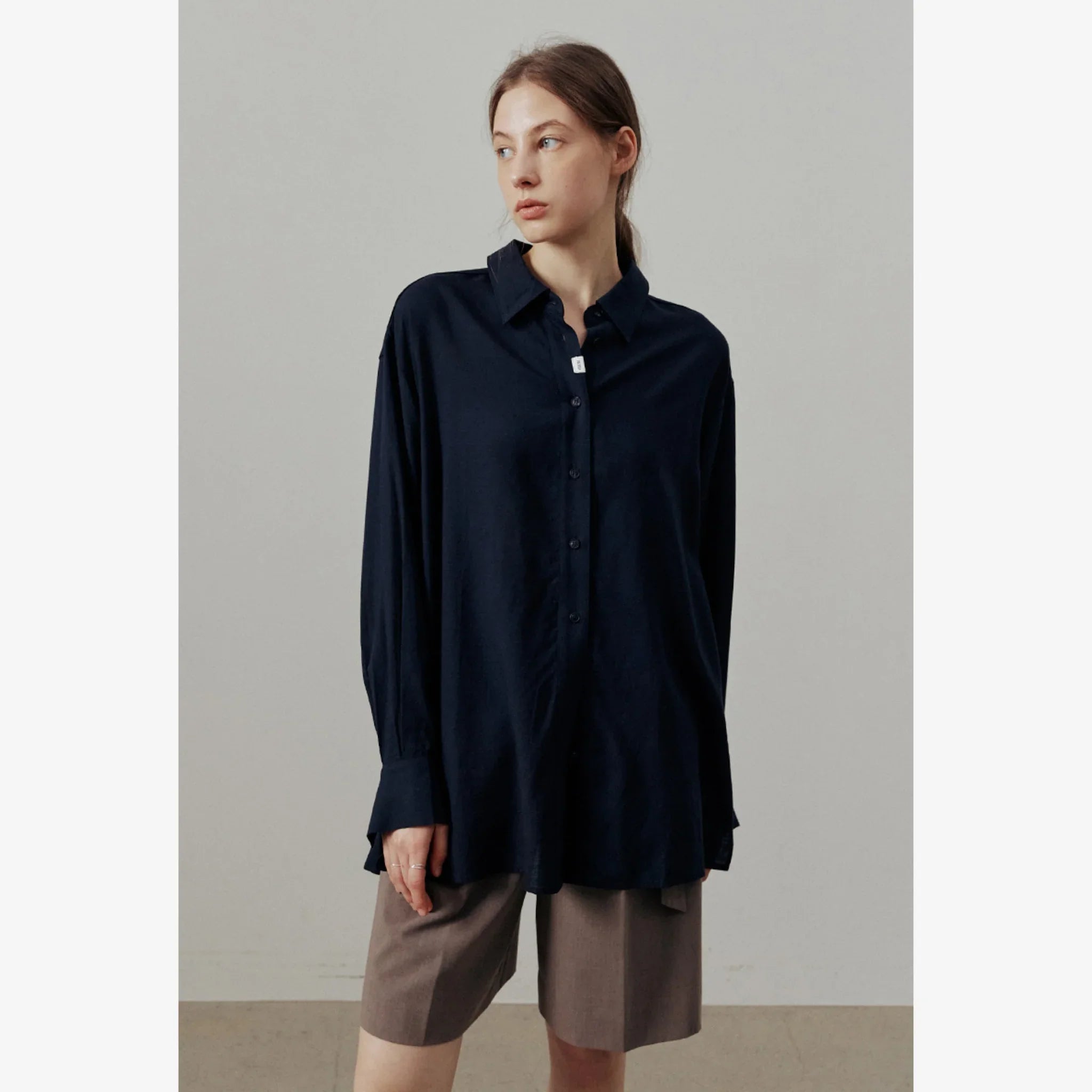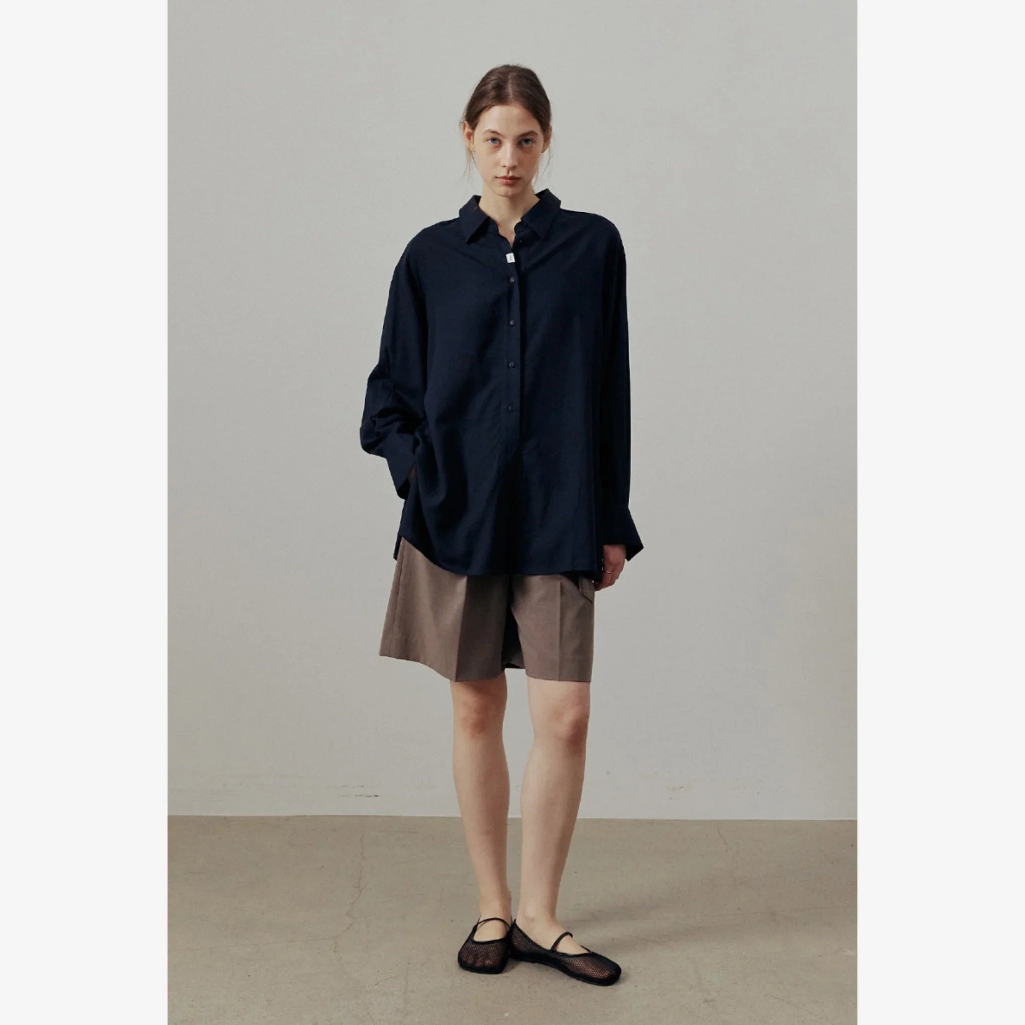 Relaxed oversized shirt with versatile two-way styling. Crafted from breathable linen-Tencel blend for comfort and sophistication.