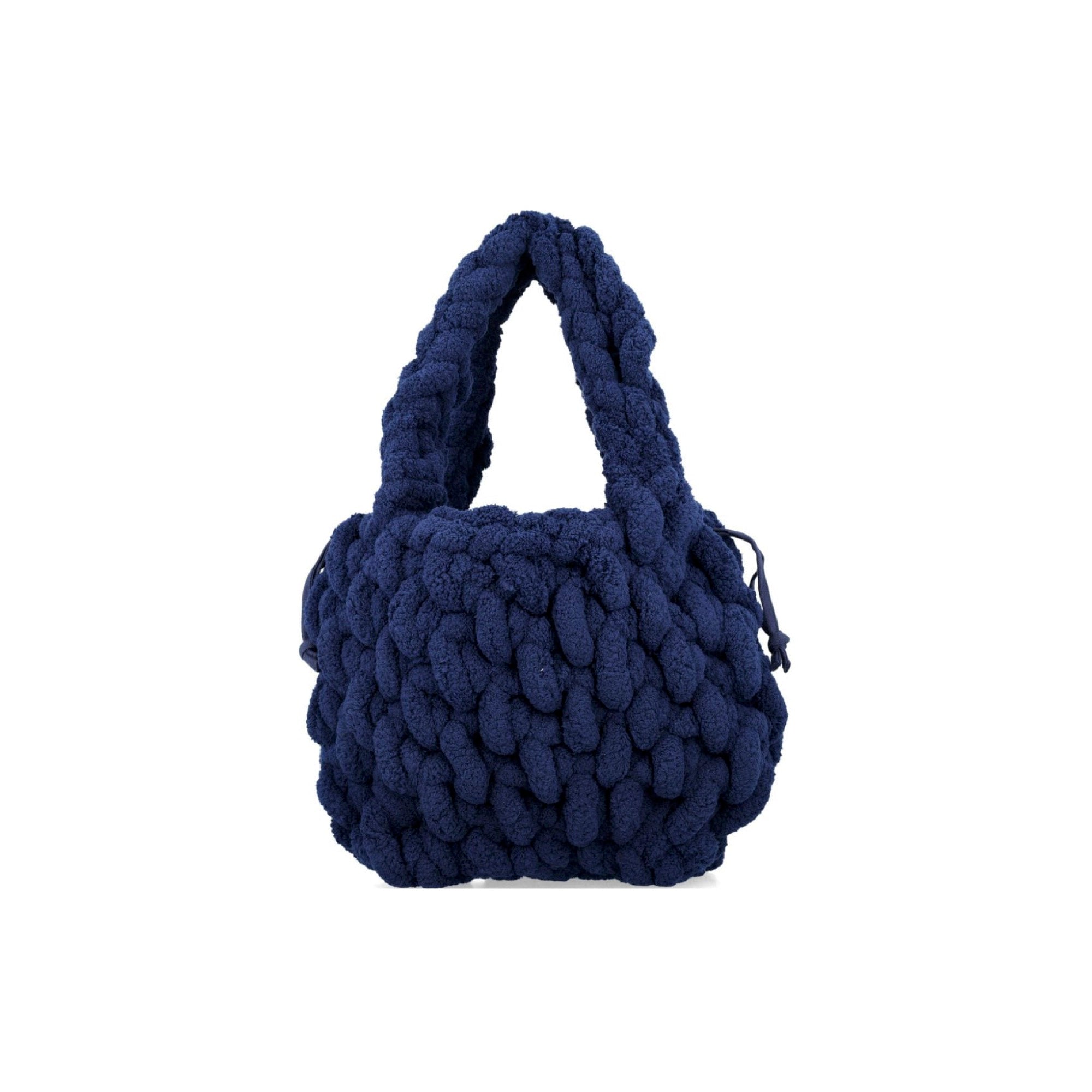 Chenille shoulder bag that can be worn in hand or on shoulder.