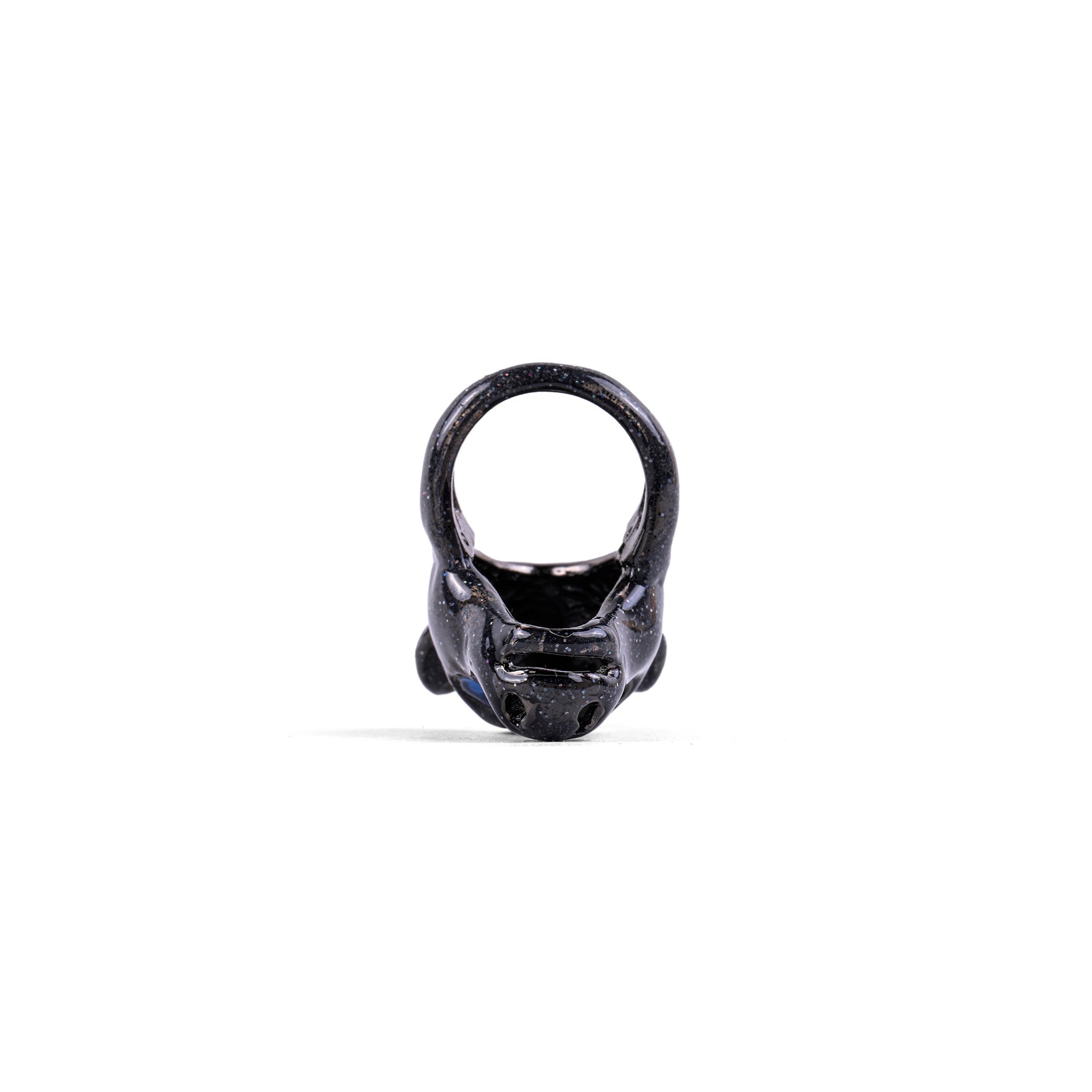 Hand-enameled recycled pewter signet ring in antiqued gold tone.