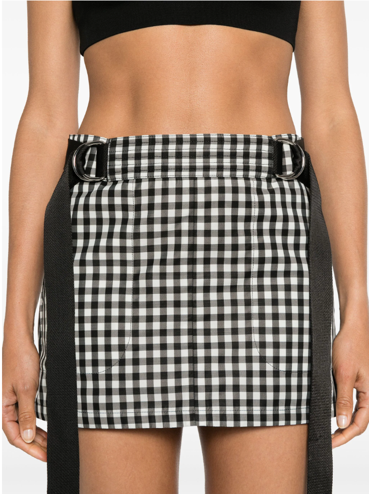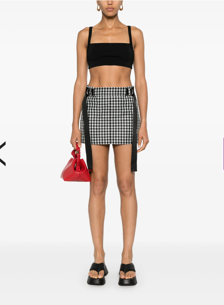 Black colored A-line mini skirt.