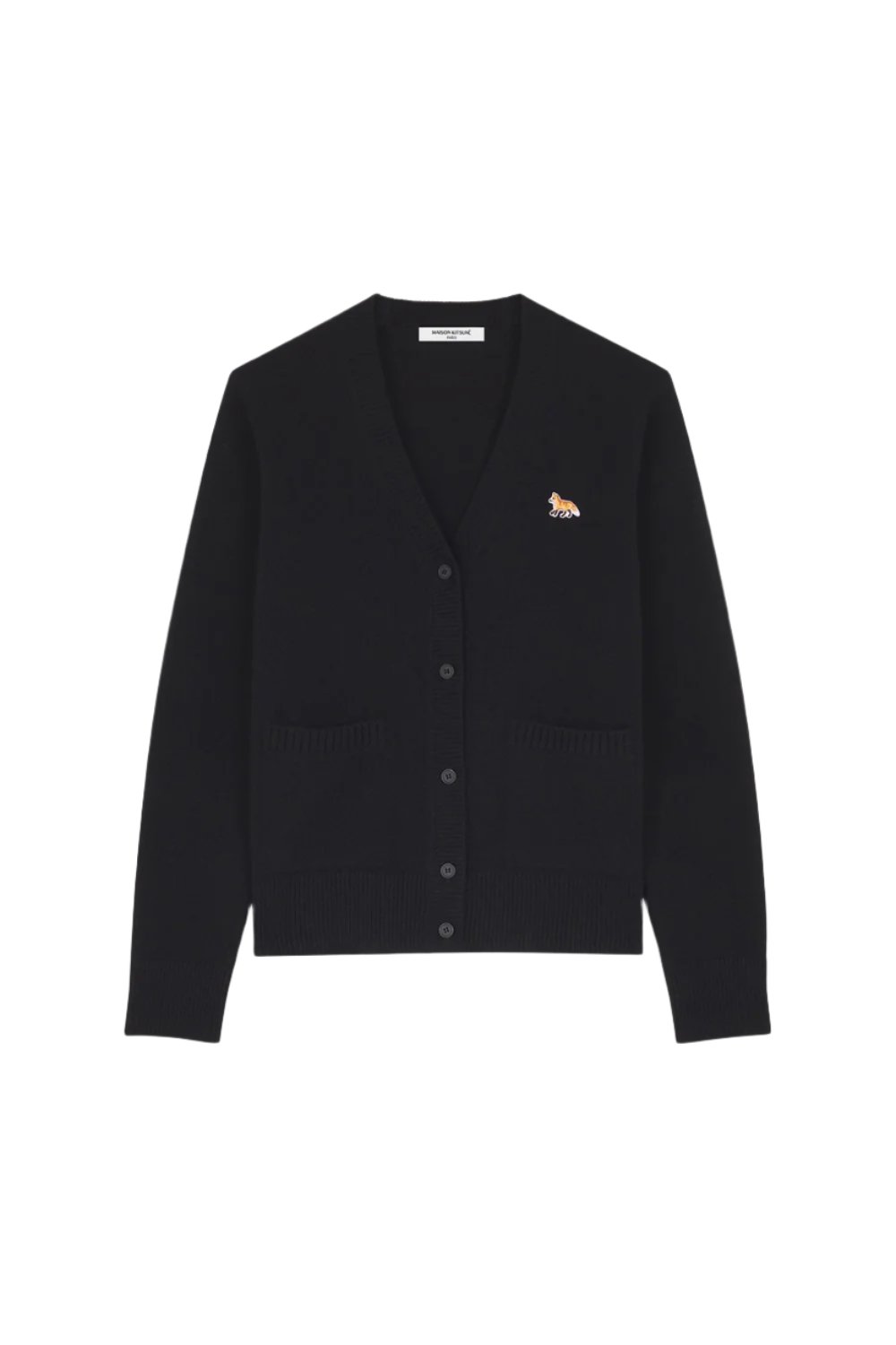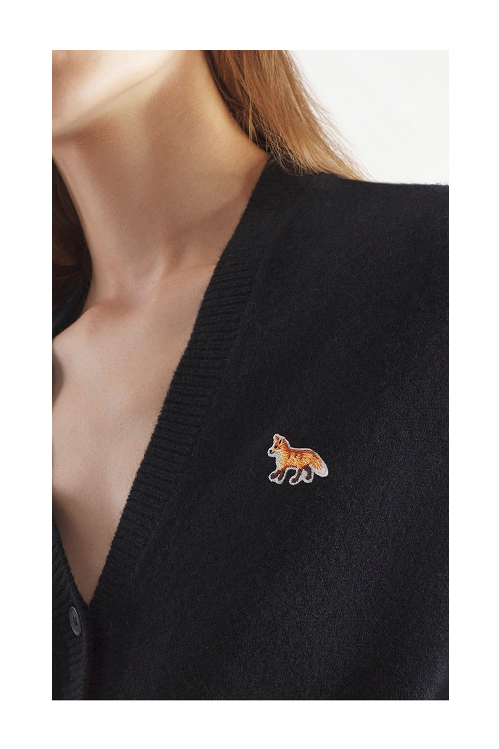 Long sleeve lambswool cardigan. Boxy fit with embroidered Baby Fox patch on the chest.