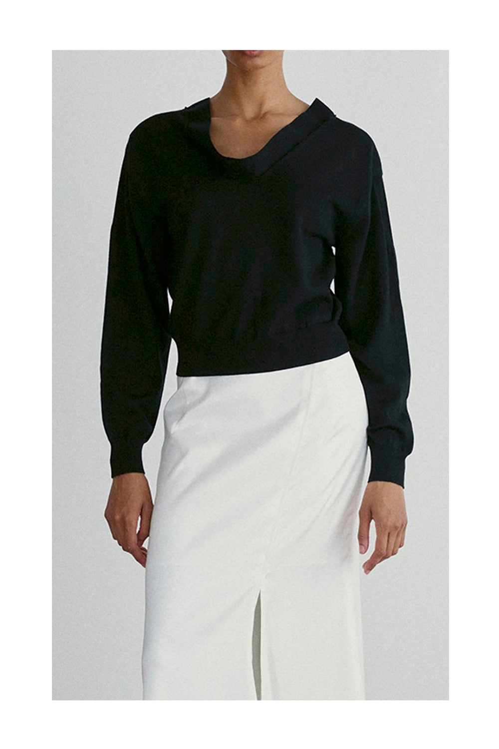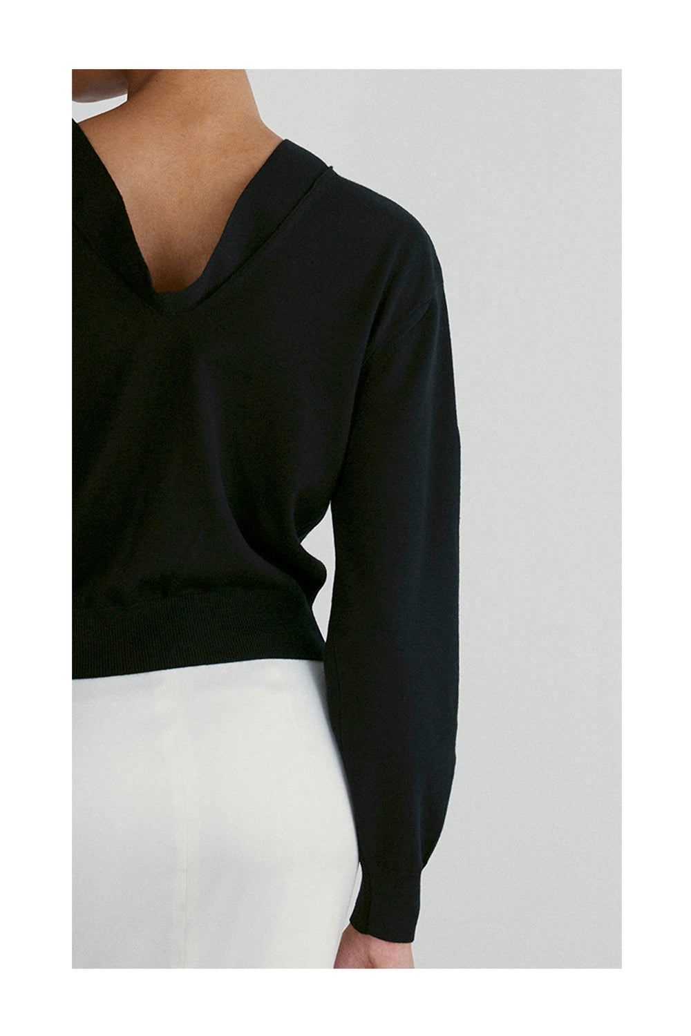 Draped v-neck knit top.