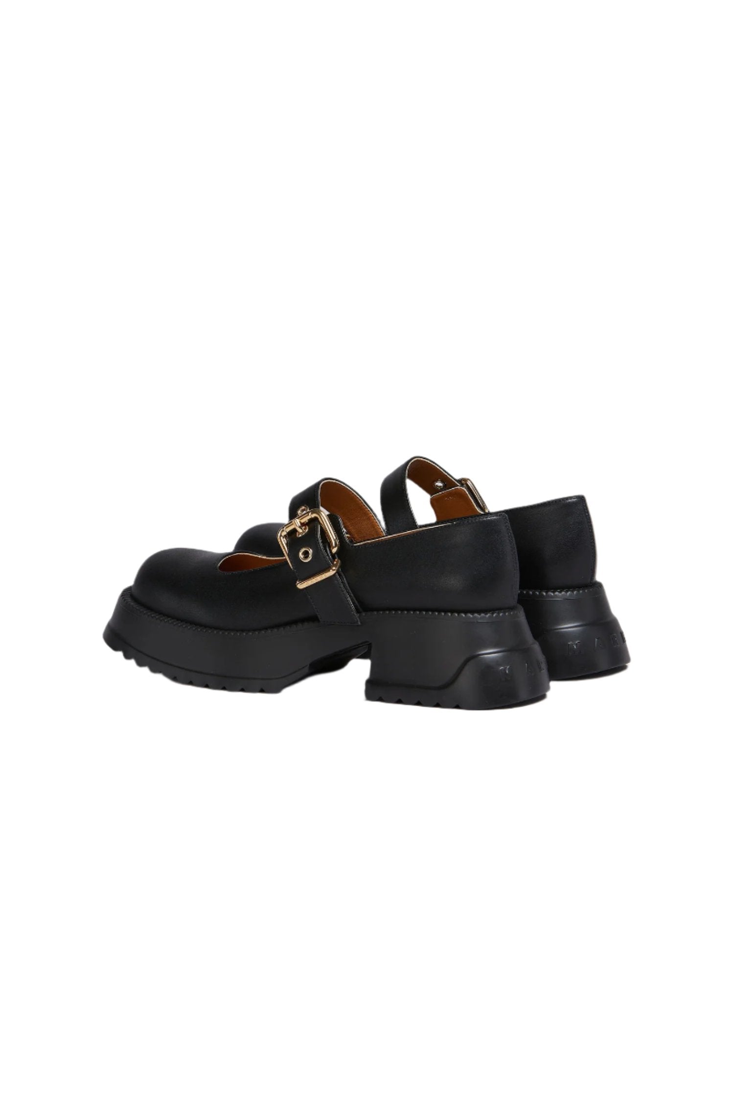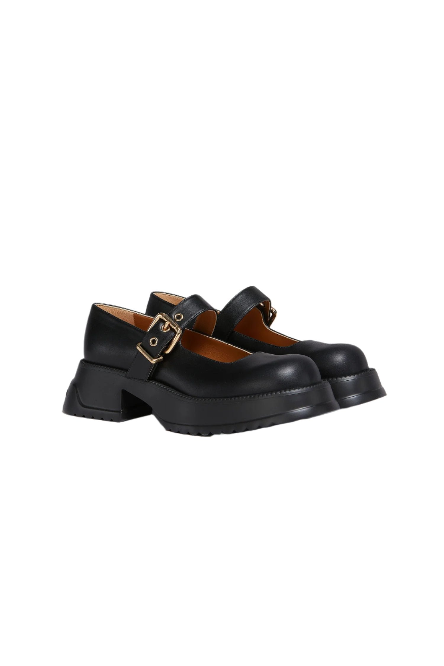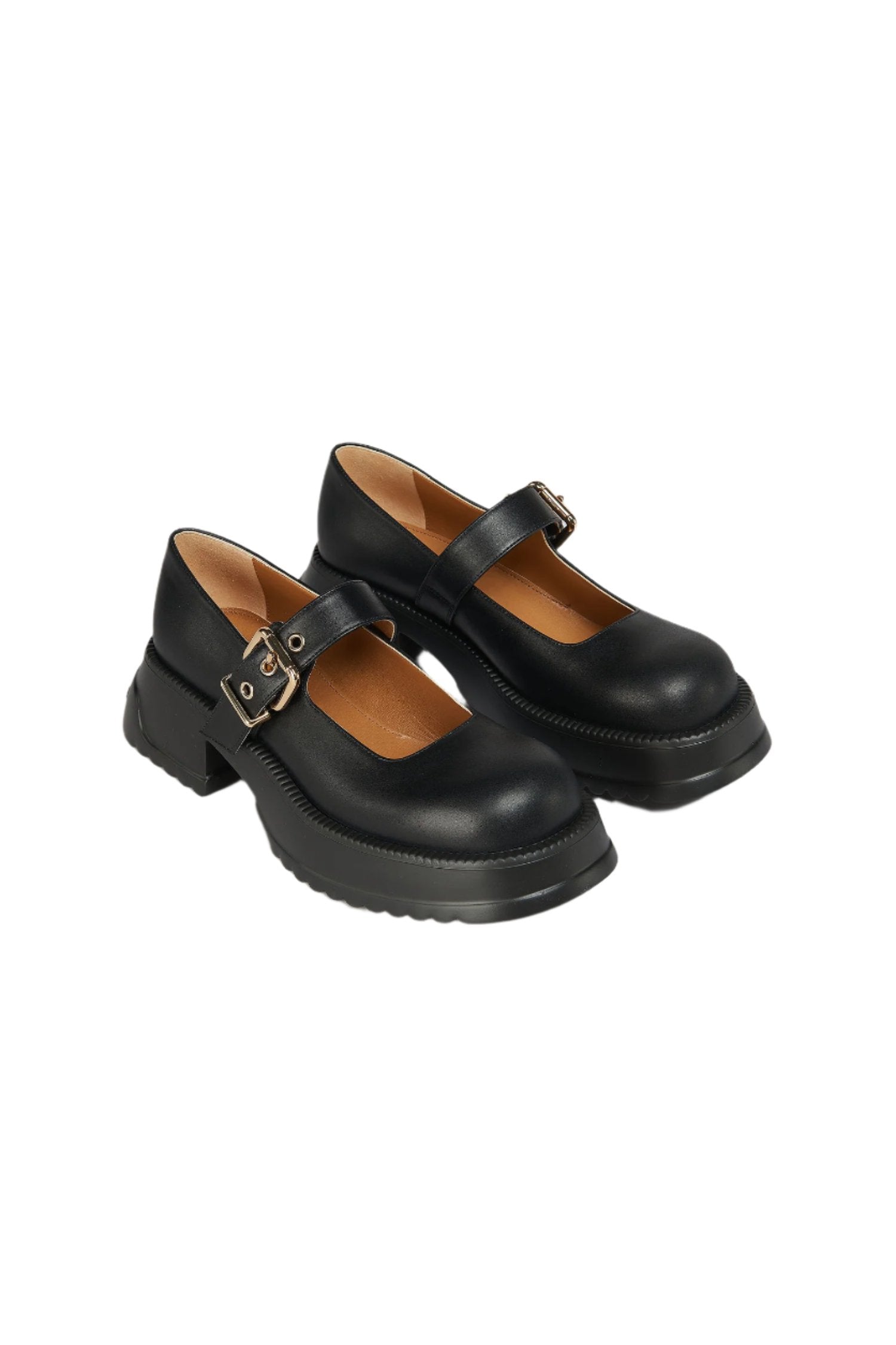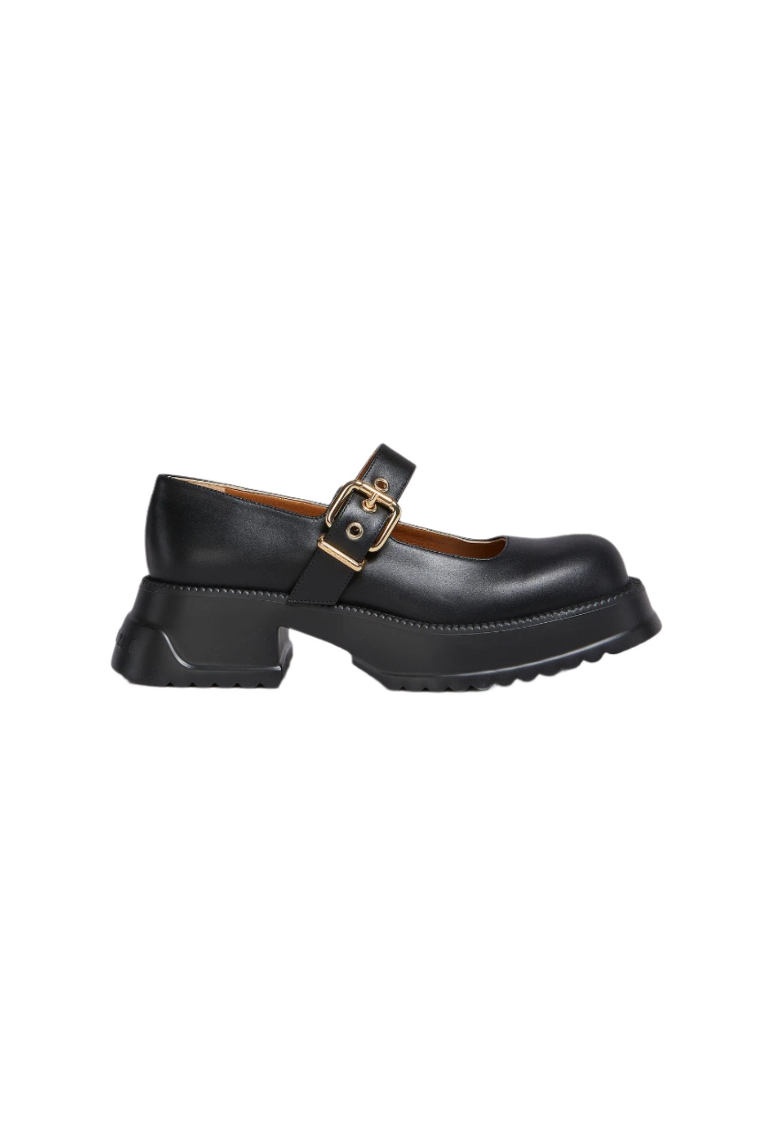 플랫폼 밑창이 달린 검은색 가죽 메리 제인.