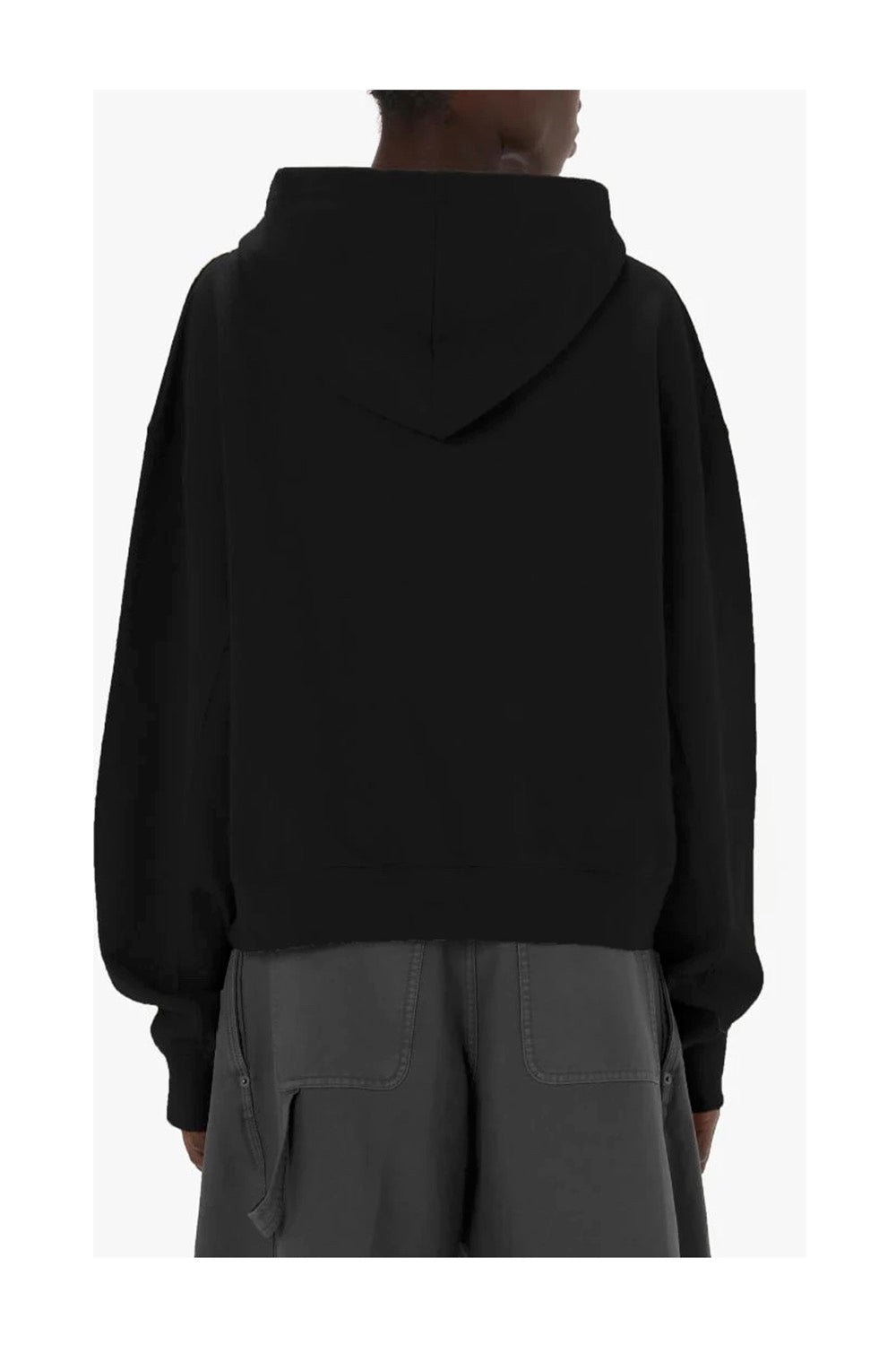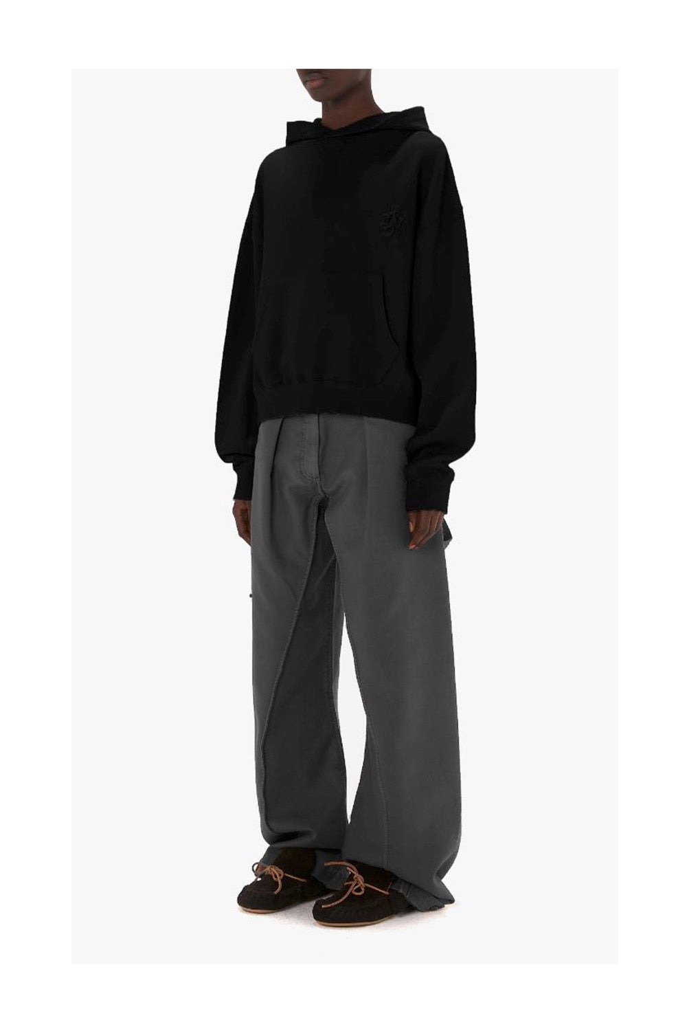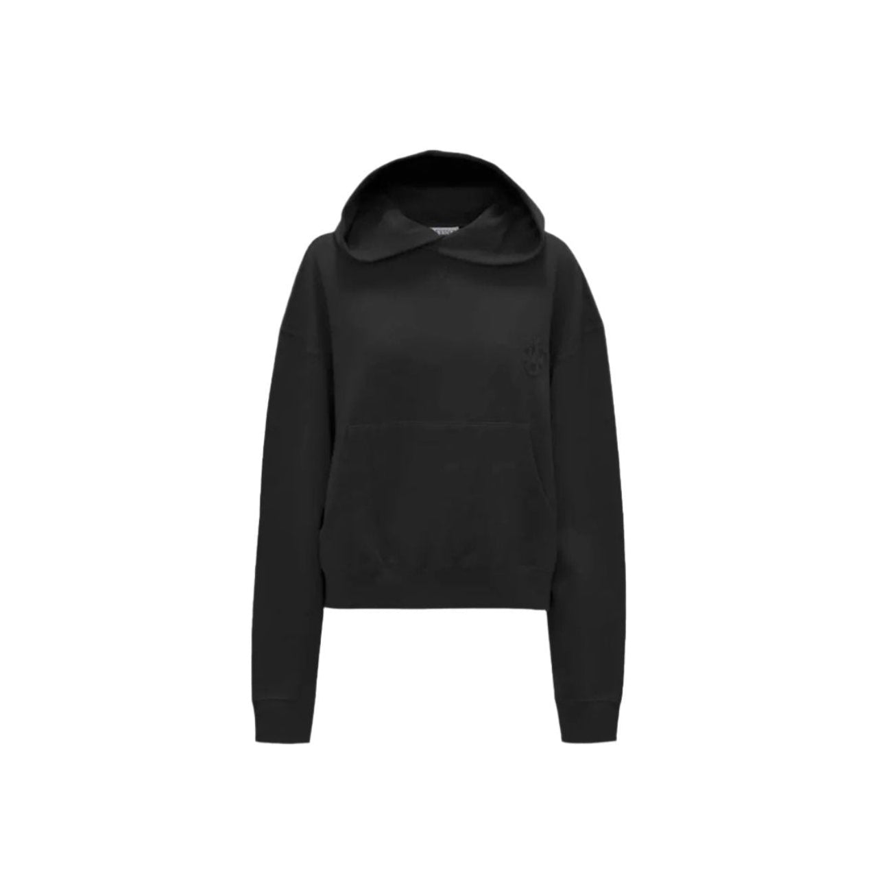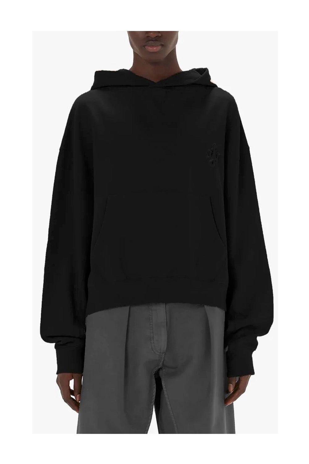 왼쪽 가슴에 앵커 로고가 있는 박스형 핏의 크롭 후드 티입니다.