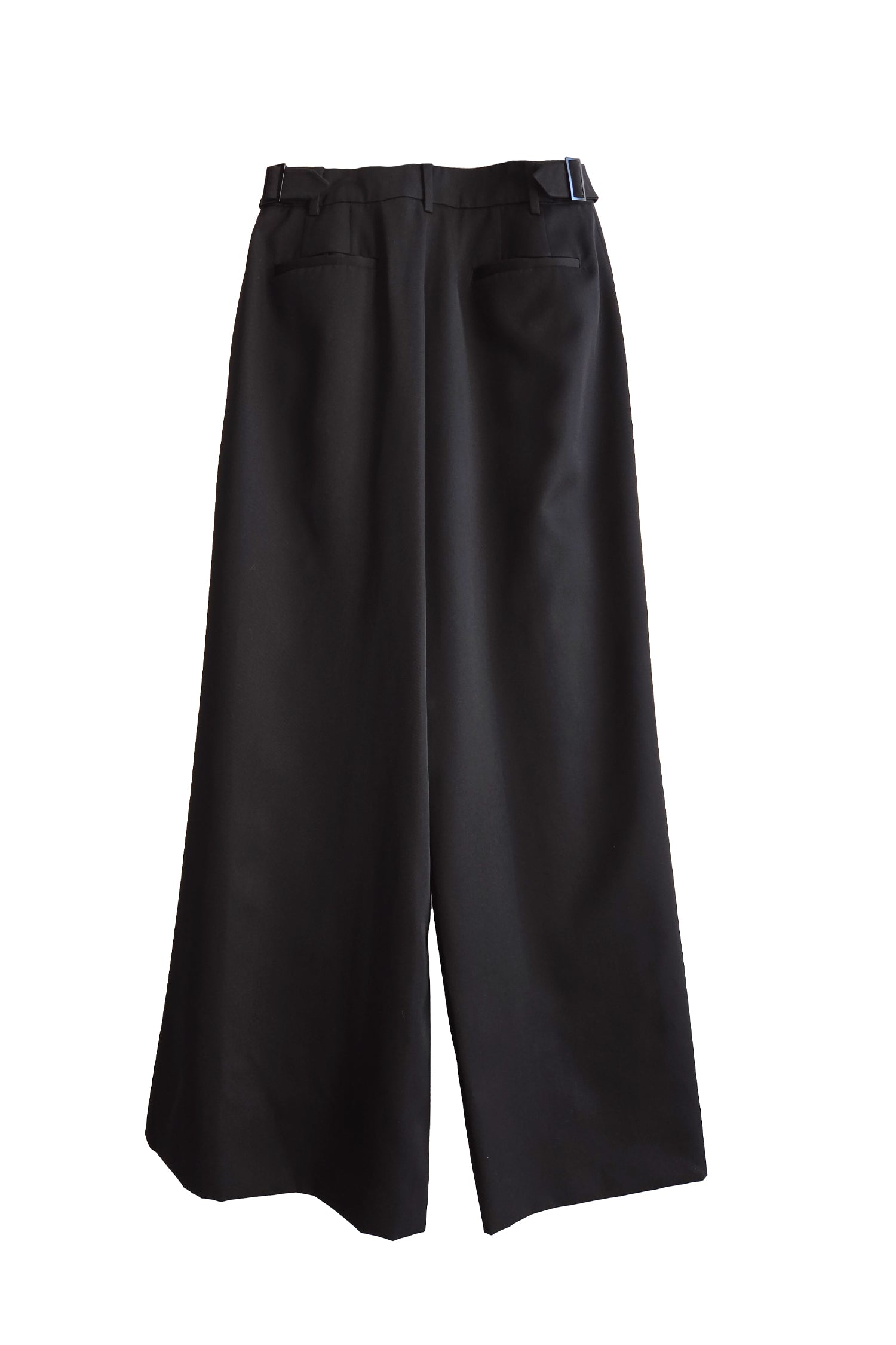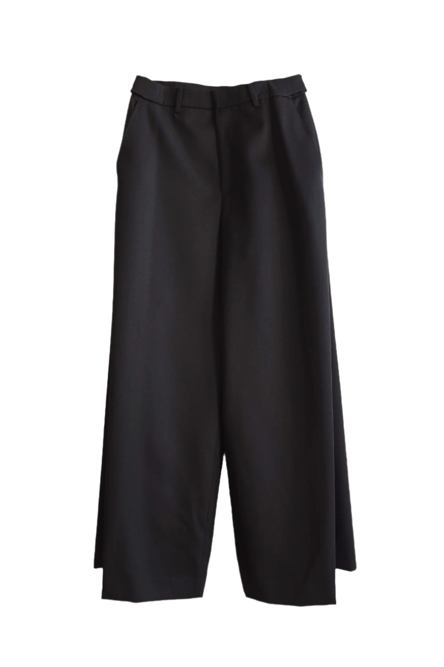 앞면에 숨겨진 잠금장치가 있는 남성용 울 와이드 팬츠입니다.