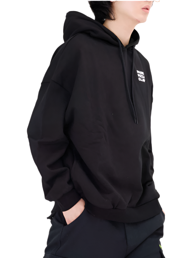 앞가슴과 뒤에 PPC 클래식 로고가 있는 후드 티셔츠입니다.