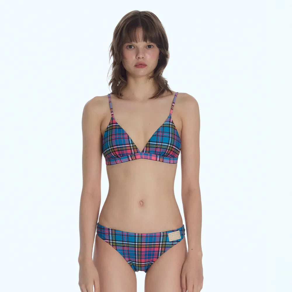 Triangle reversible bikini top in Preppy Check Blue, balancing a bold plaid statement with a versatile solid side for effortless styling.