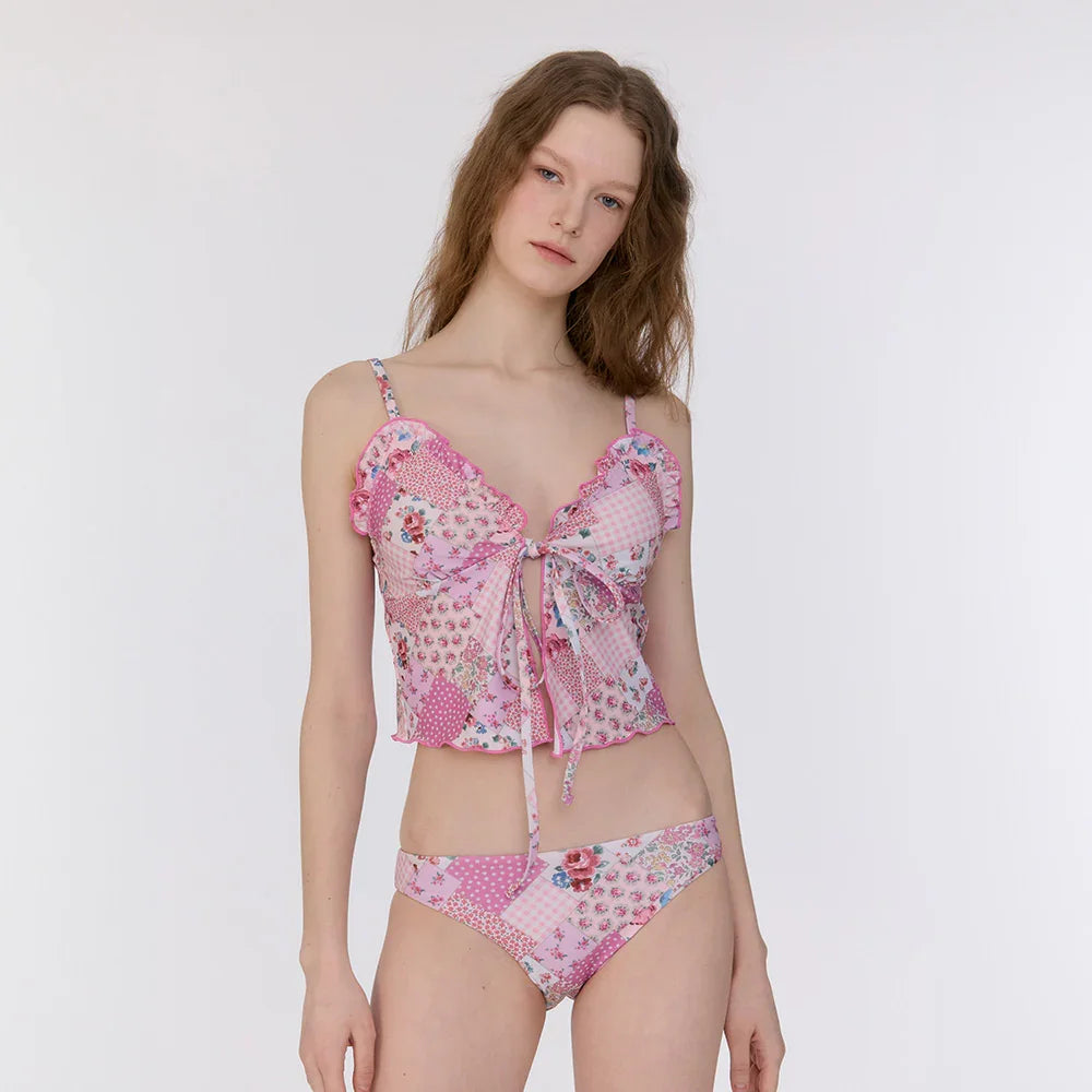 Bustier tankini top in Bohemian Patchwork Pink, blending a romantic patchwork motif with a supportive silhouette designed for both style and comfort.