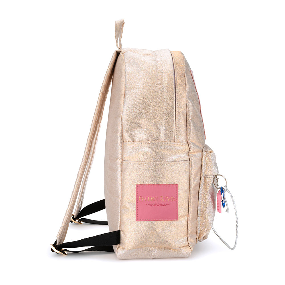 ENTRE RÊVES’ number-one bestselling item. The bag features a gold and ivory two-tone fabric with a subtle sheen, harmoniously paired with baby pink patches. A soft lavender interior lining completes the irresistibly charming look.