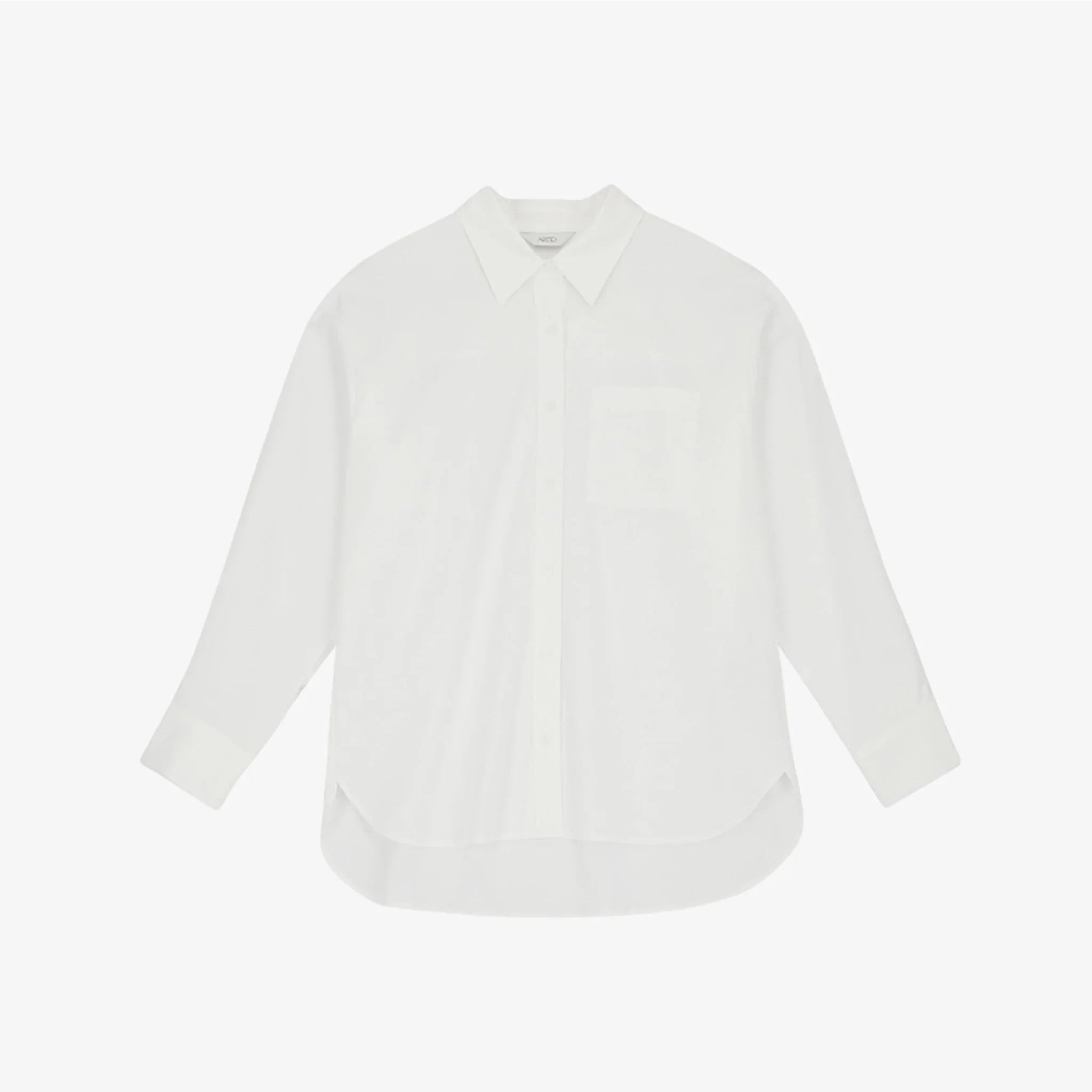 Relaxed oversized shirt with functional large chest pockets, designed for versatile styling and effortless layering across seasons.