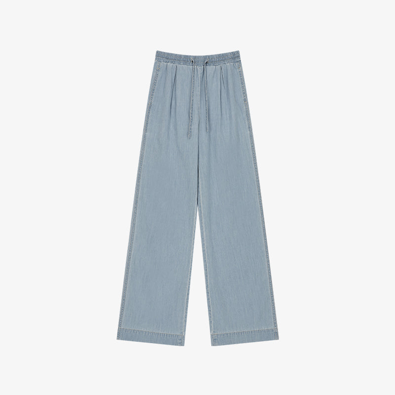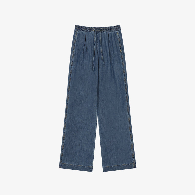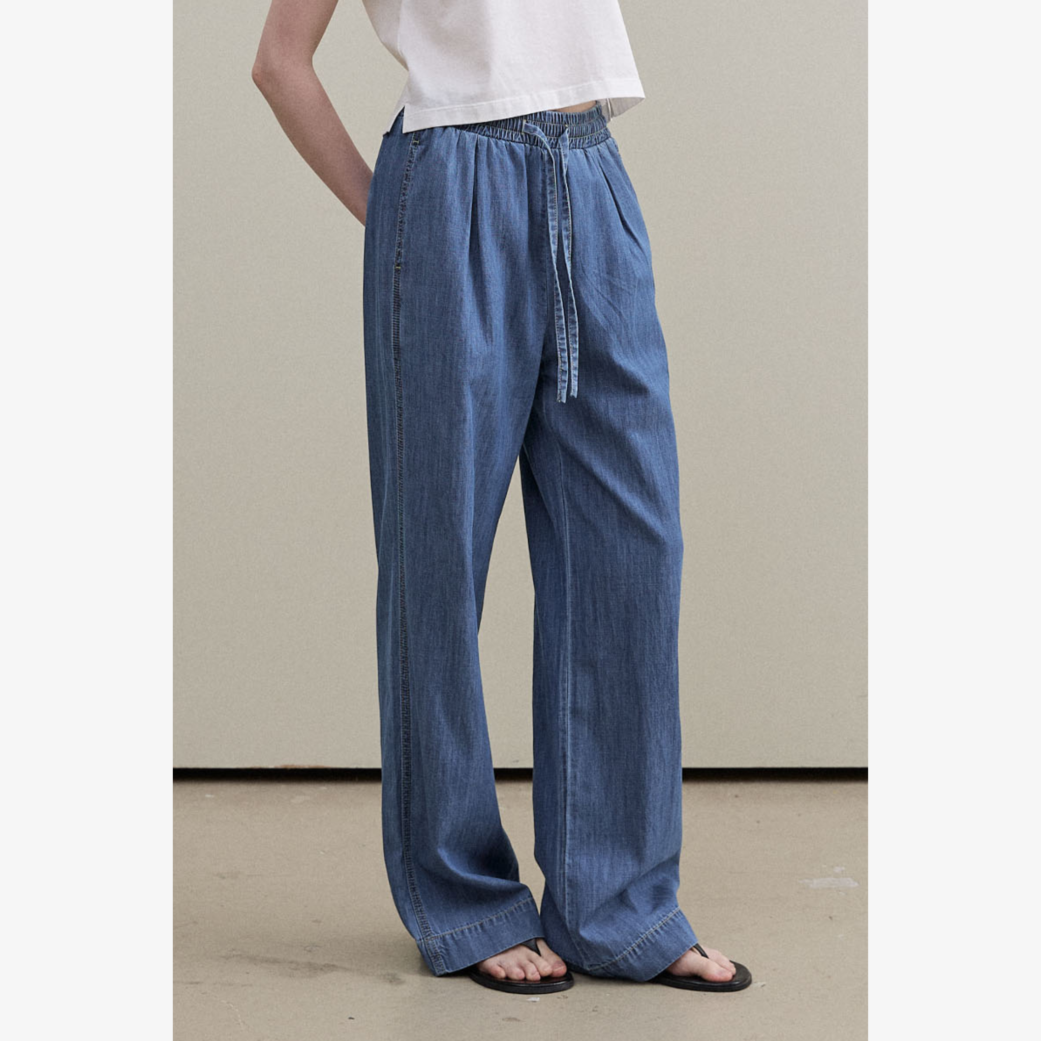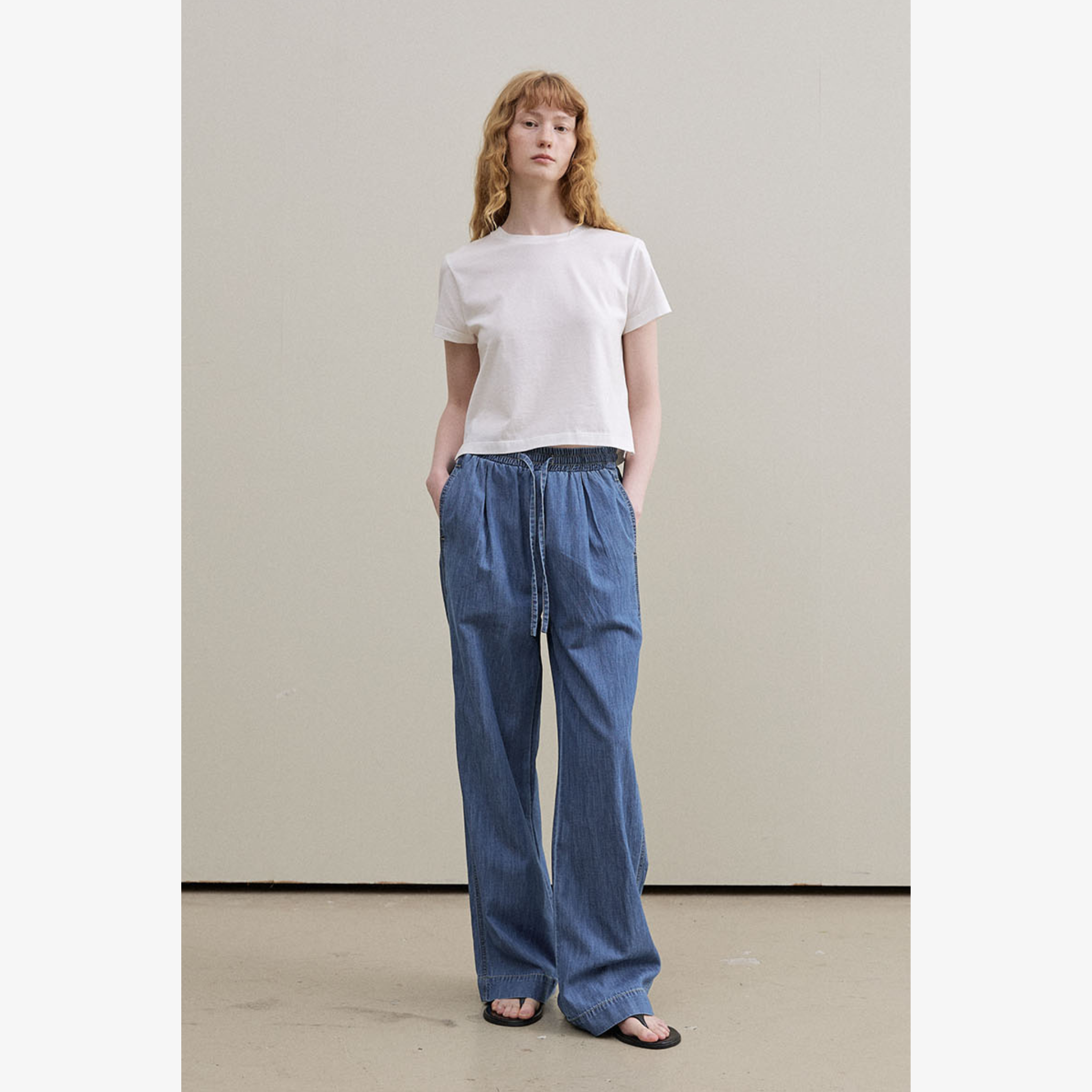 Light tuck denim pants designed with a relaxed semi-wide silhouette for easy summer wear. Made from lightweight cotton denim, offering comfort and breathability for everyday styling.