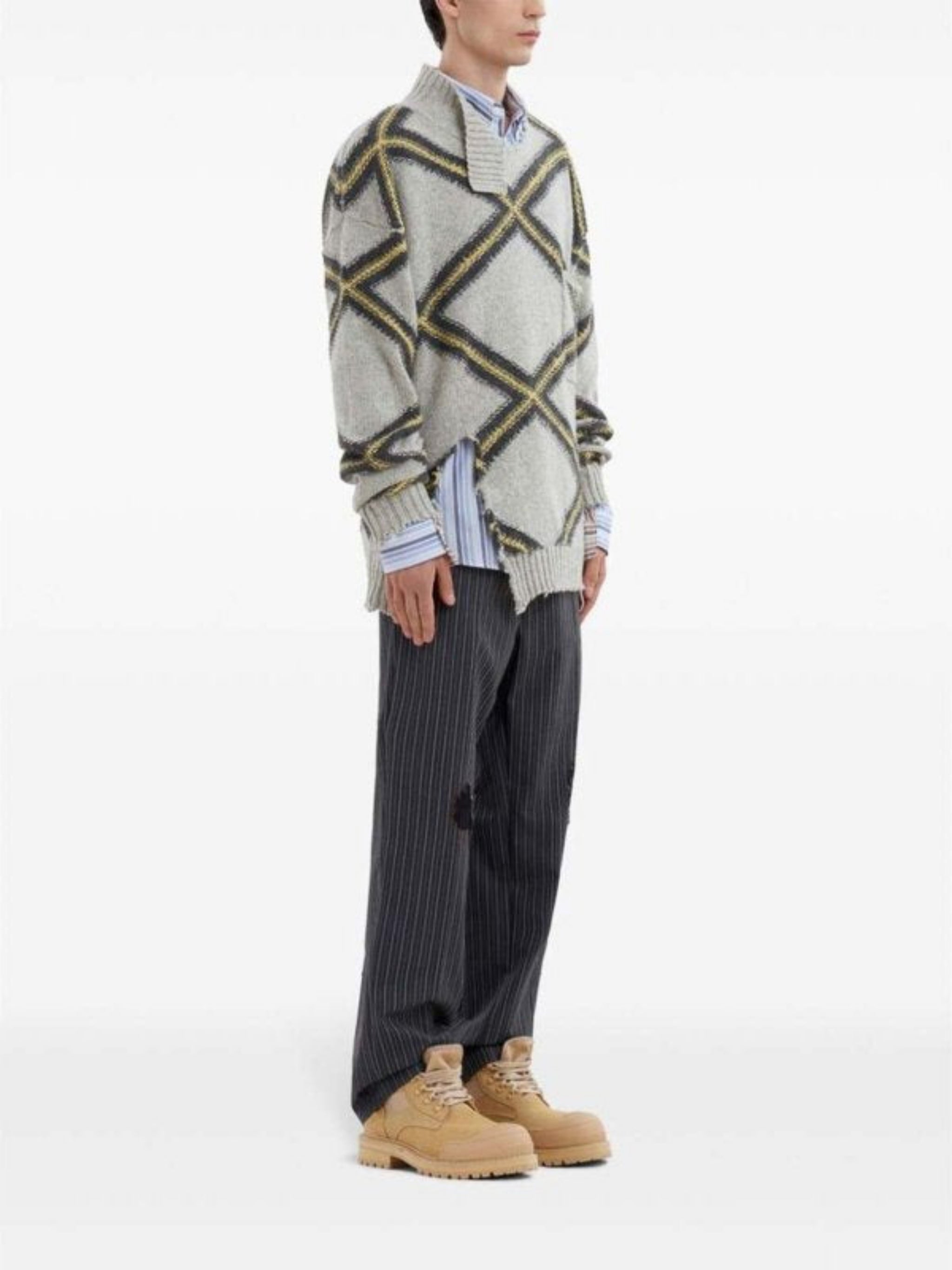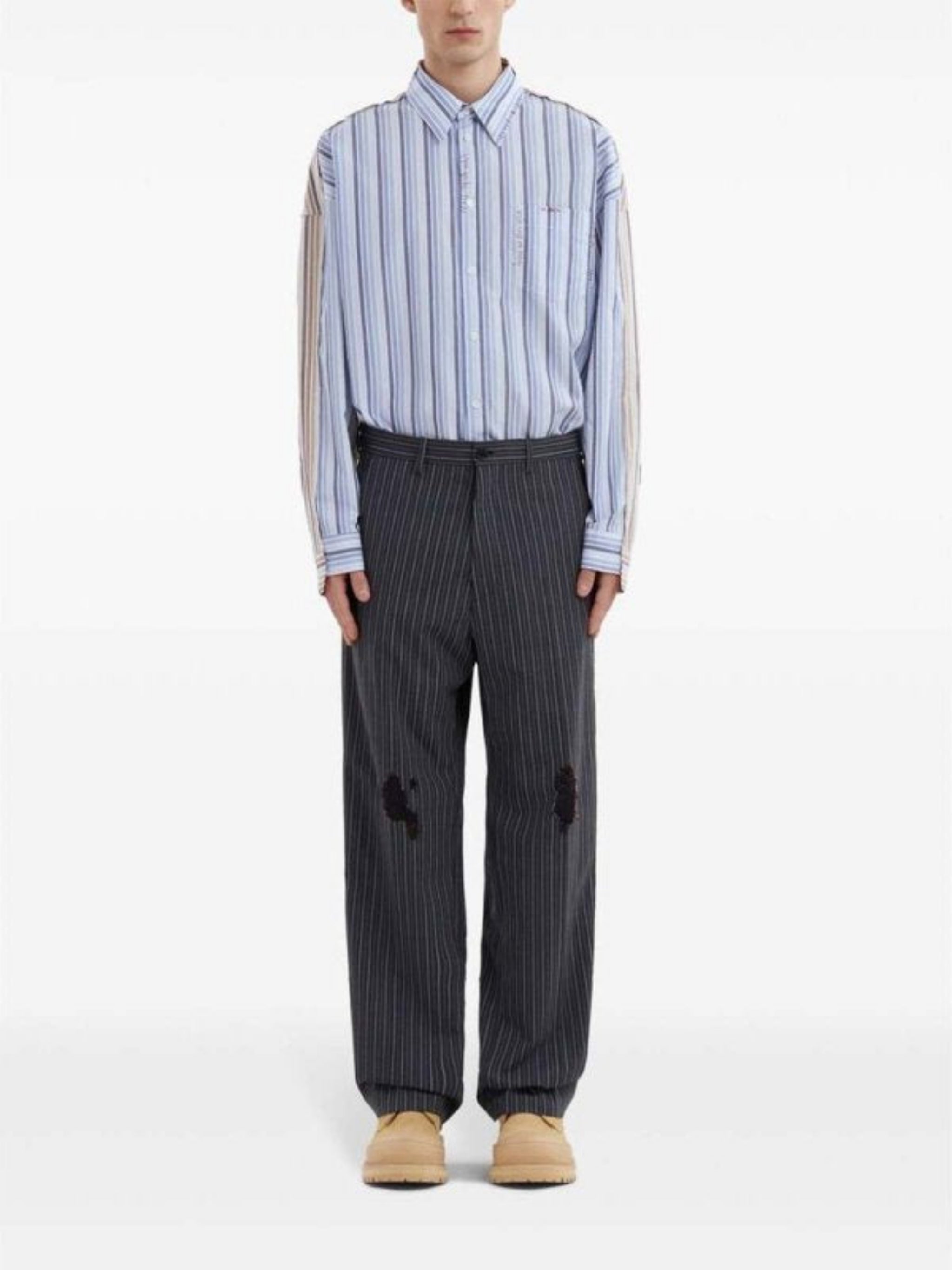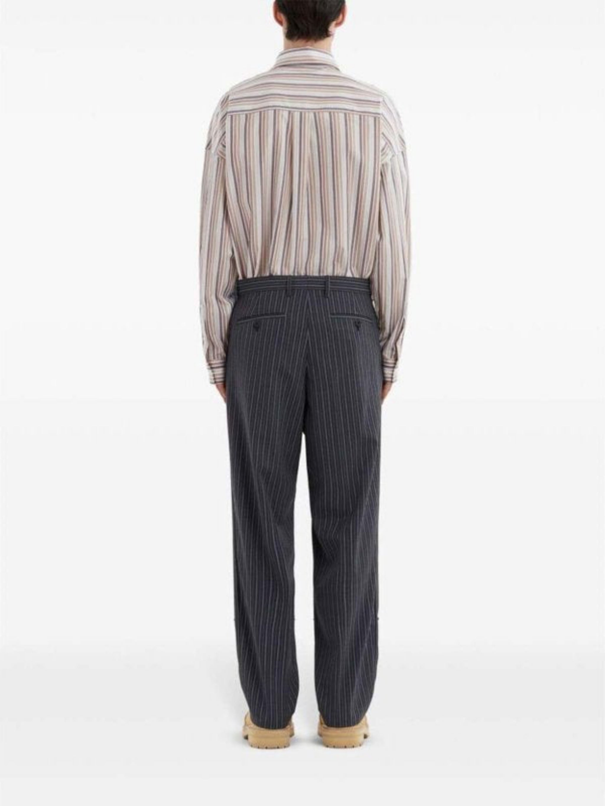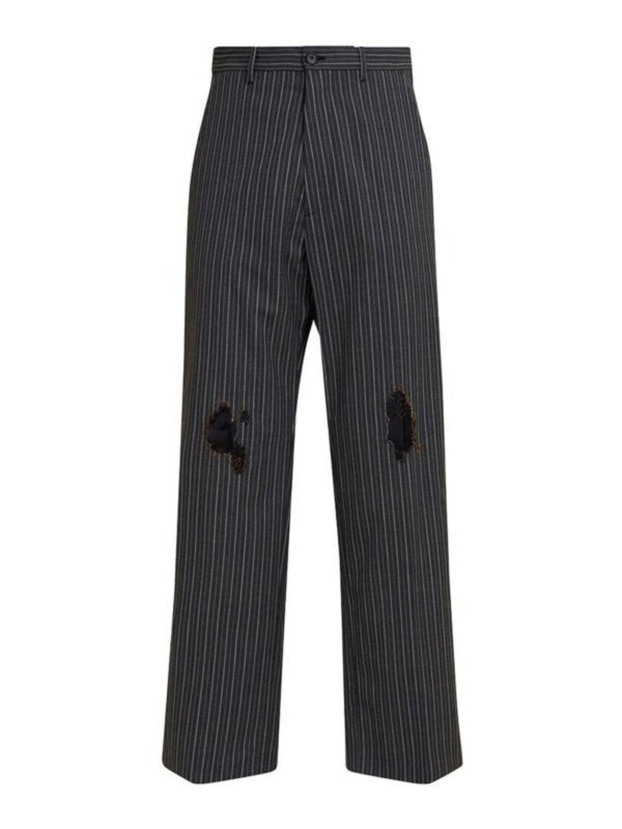 Loose fit pinstripe trousers with straight leg.