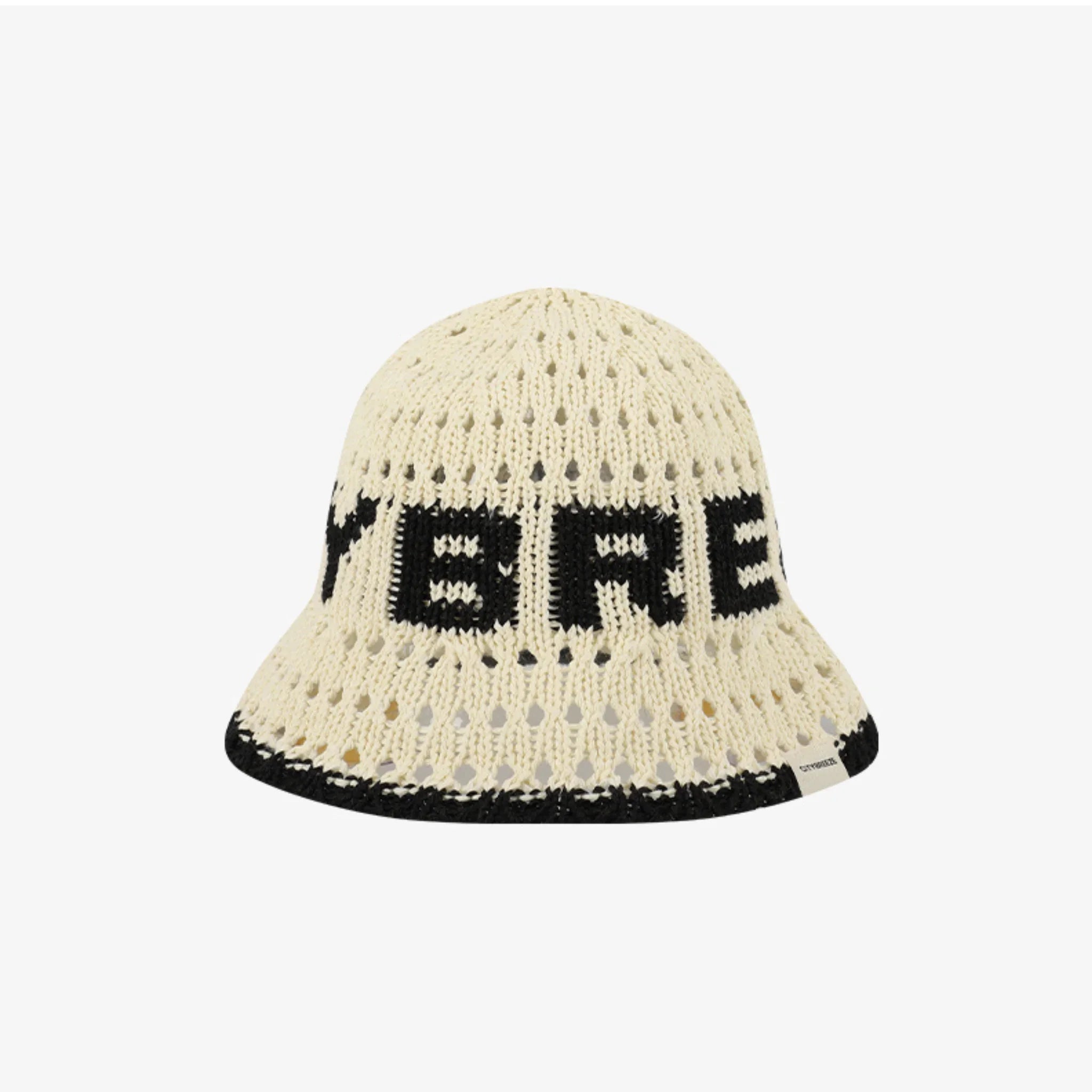 Logo point crochet bucket hat featuring a contrasting logo detail for a bold accent. Crafted with natural hanji yarn for a distinctive texture, enhancing the brand identity with its logo-focused design. The eye-catching color contrast adds a stylish finishing touch.